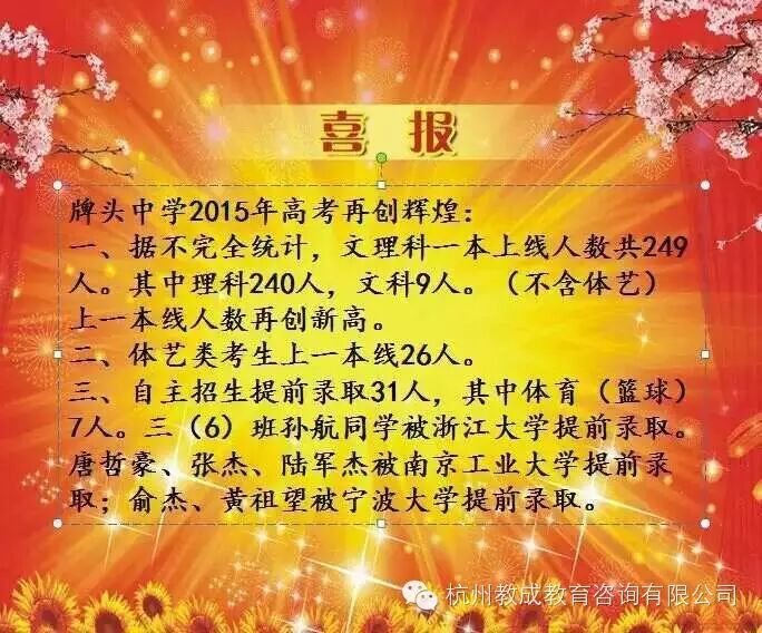 祝贺浙江诸暨牌头中学2015年高考辉煌!